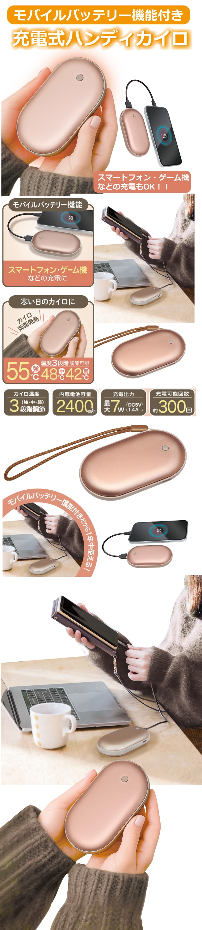 - 充電式ハンディカイロ(モバイルバッテリー機能付き)