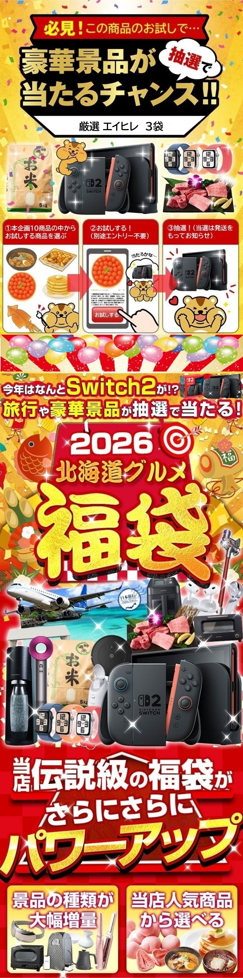 - 【豪華景品が抽選で当たる!】 エイヒレ 3袋セット .北海道グルメ福袋2026. 【M】