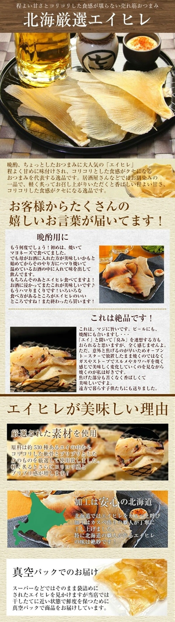 特に北海道の職人が作るエイヒレの味は絶妙です!