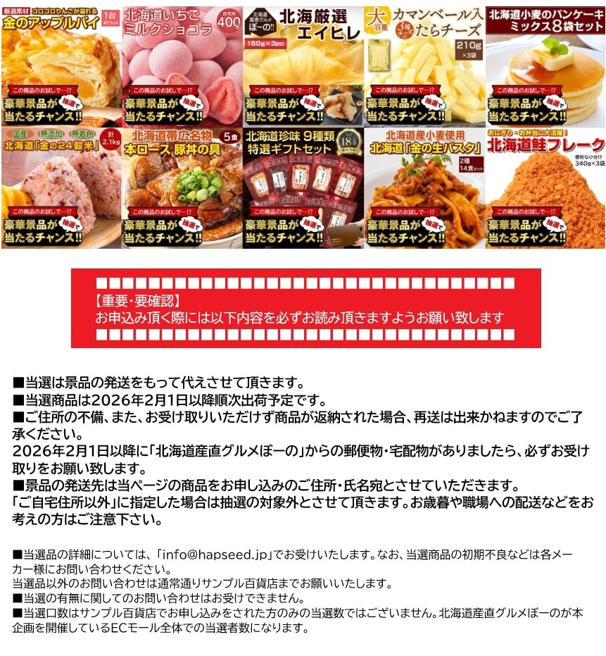 ▼▼豪華景品が抽選で当たる!おトクな北海道グルメ福袋2026抽選商品▼▼