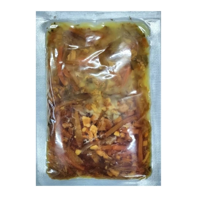 ・調味たれ(国内製造)(本醸造醤油、糖類(果糖ぶどう糖液糖、砂糖)、食塩、たん白自己消化物、かつおエキス、イリコエキス、ほたてエキスシーズニング、こんぶエキス)、ごぼう(国産)、鶏肉(国産)、人参(国産)、筍(国産)、鶏油、椎茸(国産)、食用植物油 / 調味料(アミノ酸等)、ビタミンB1、香料、(一部に鶏肉・大豆・小麦・豚肉を含む)