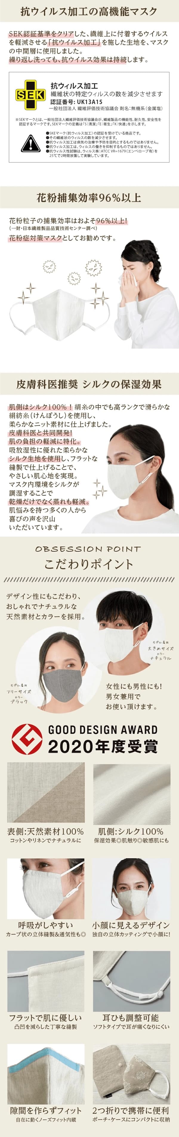 【ネイビー/F】け心地抜群!日本製布マスク『ファブリックケアマスク』オーガニックコットンタイプ | グッドデザイン賞受賞!皮膚科医と共同開発した肌の負担軽減に特化した高機能マスクです。