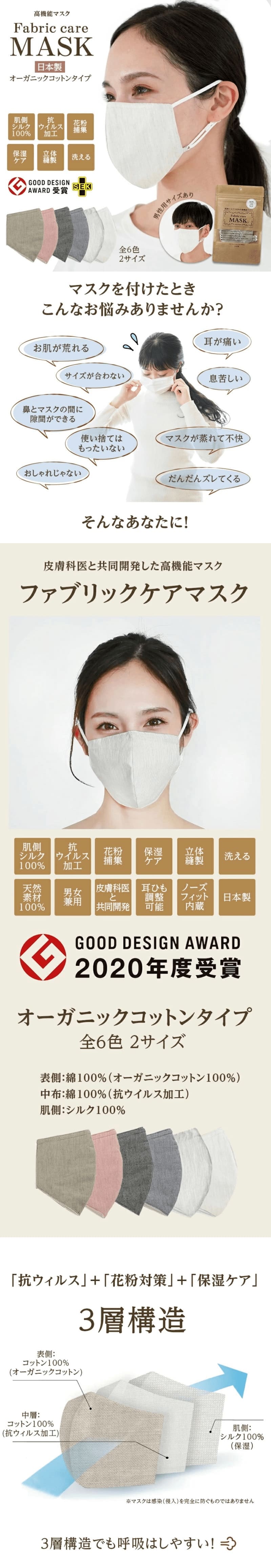 【ブラック/F】着け心地抜群!日本製布マスク『ファブリックケアマスク』オーガニックコットンタイプ | グッドデザイン賞受賞!皮膚科医と共同開発した肌の負担軽減に特化した高機能マスクです。