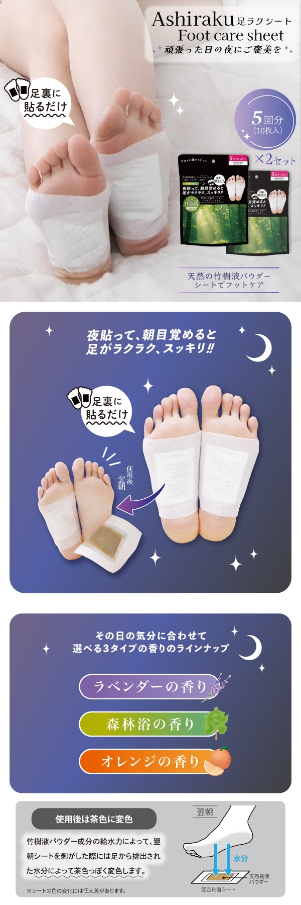 【5回分(10枚)×2/森林浴の香り】足ラクシート20枚入り | 夜貼って、朝目覚めると貼って足がラクラク、スッキリ!!
