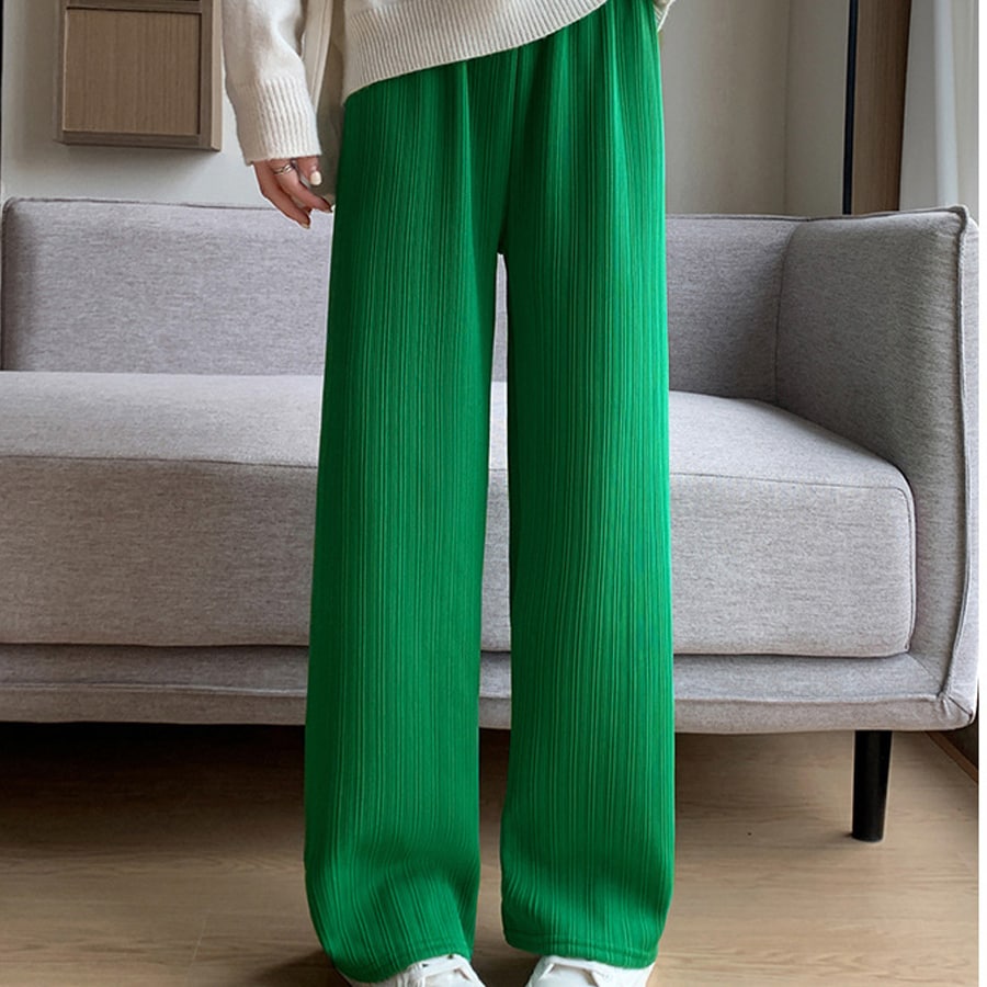 - 【グリーン】裏起毛 ウエストゴムワイドパンツ