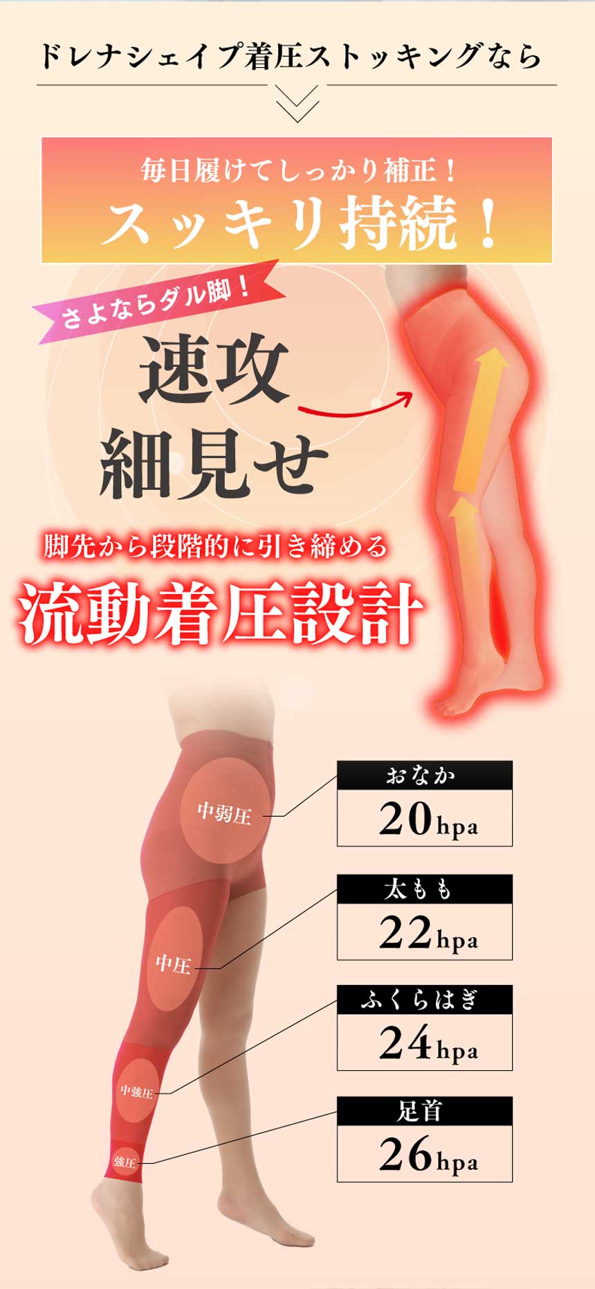 【ベージュ色S-Mサイズ】ドレナシェイプ超着圧美脚ストッキング!脚からお腹お尻までトータル着圧補正 | 肌なじみ抜群の着圧ストッキングで美脚・リフレケア・スッキリキープ!あし疲れ知らず♪