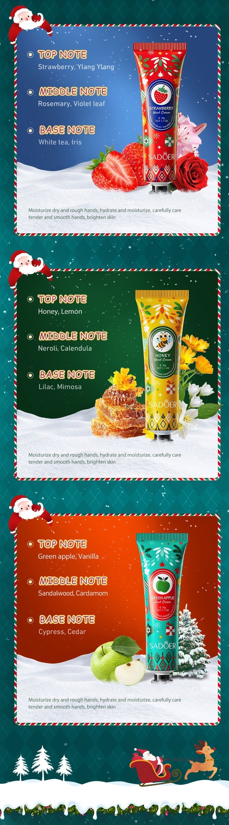 箱潰れでおトク!ご自宅用に【5本セット】可愛いクリスマスパッケージ★ハンドクリーム | 箱の角がつぶれているためお得!香りが異なる5種!