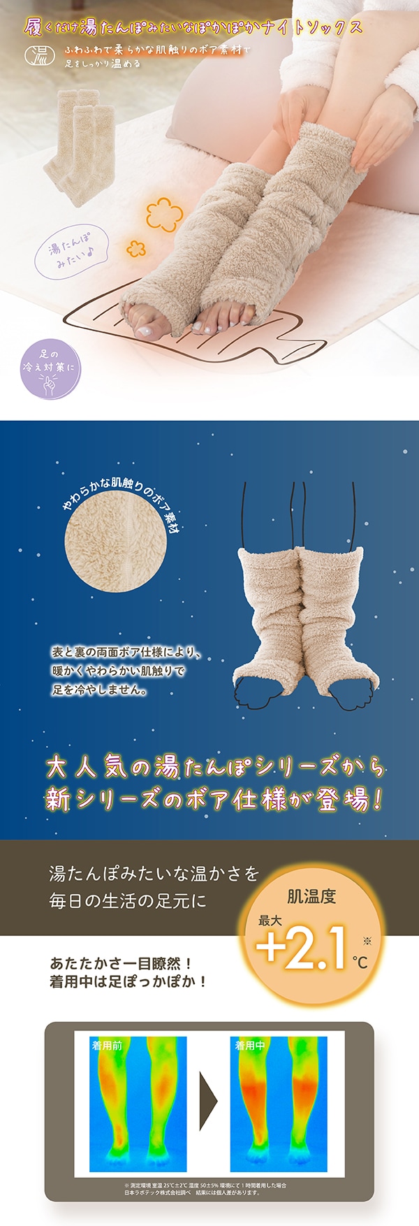 【ベージュ】湯たんぽみたいなあったかボアナイトソックス | 履くだけ湯たんぽのようなぽかぽかボアソックス