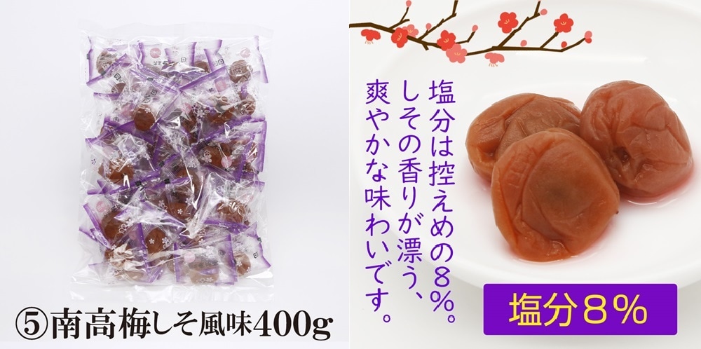 梅(和歌山県産)、漬け原材料[還元水飴、食塩、醸造酢、しそ酢、蛋白加水分解物、かつおエキス]/酒精、調味料(アミノ酸等)、野菜色素、酸味料、甘味料(ステビア)、V.B1