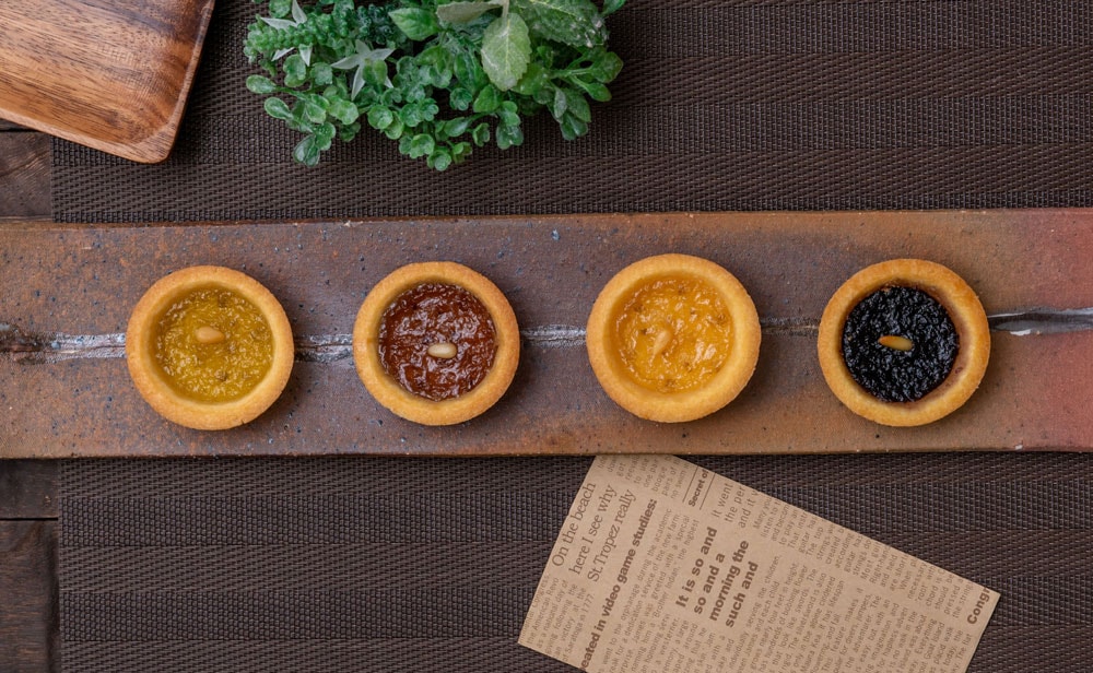 岡山で育った4種類の果実を丁寧にコンフィチュールに仕上げ、タルト生地に入れて焼き上げました。