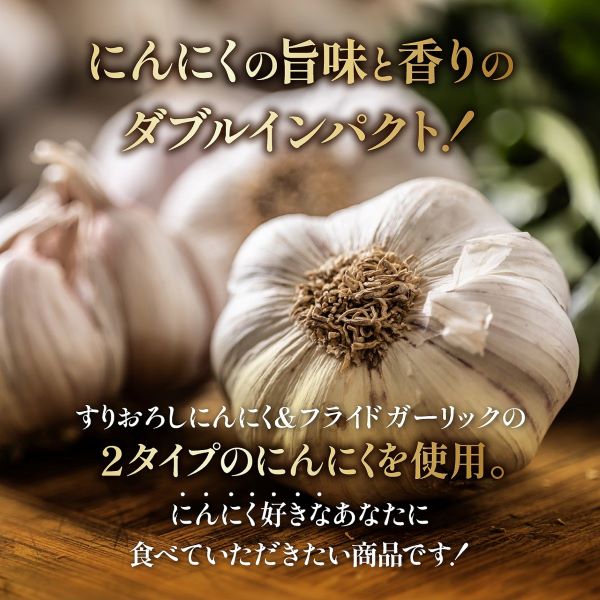 ・すりおろしにんにくと、フライドガーリックを使用することにより、にんにくの旨味と香りを楽しめます。
