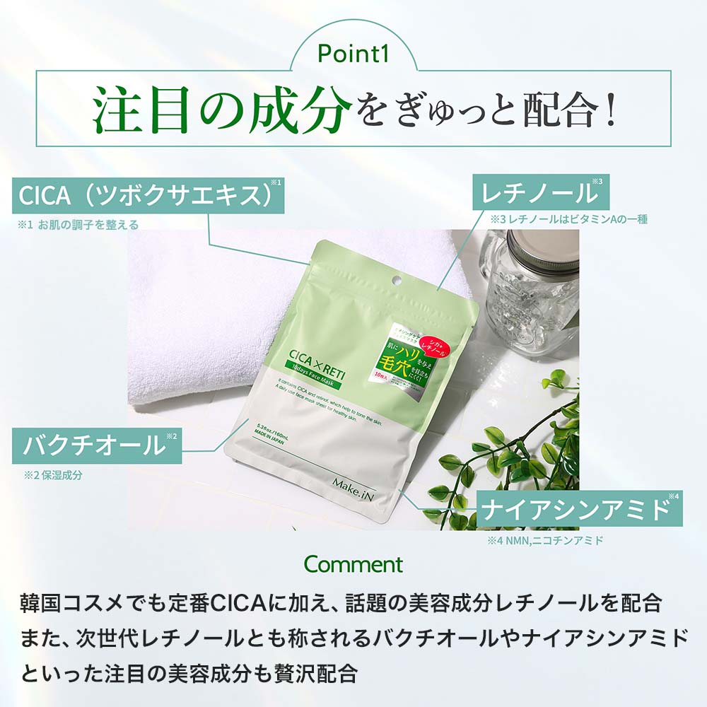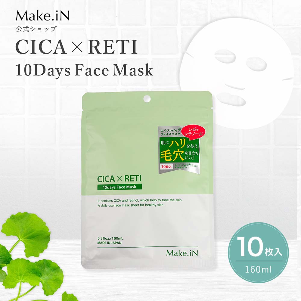【日替わり数量限定】【10枚入×4袋】Make.iN CICA+レチノール 10Days フェイスマスク | 守りのCICA & 攻めのレチノールでお肌をスペシャルケア! 注目の美容成分を贅沢配合