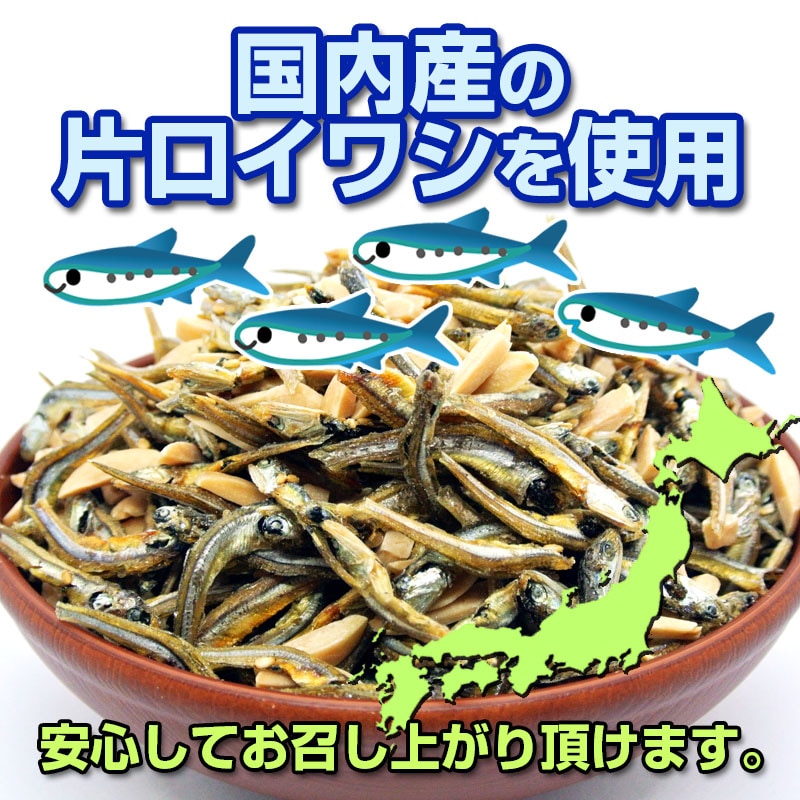 アーモンド(アメリカ産)、片口いわし(国内産)、砂糖、麦芽糖、ごま