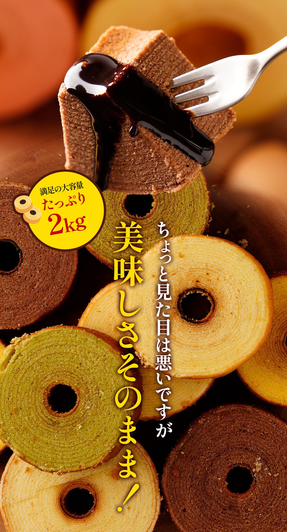 - おもいきり食べられる下町バームクーヘンの秘伝のレシピで焼き上げたしっとりミニクーヘン!2kgの超ボリューム!!