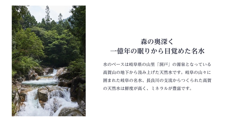 岐阜県洞戸の高賀渓谷奥長良川の名水(天然水)に特許技術により水道水の約12倍の酸素を、たっぷり48mg/L充填した高濃度酸素水です。