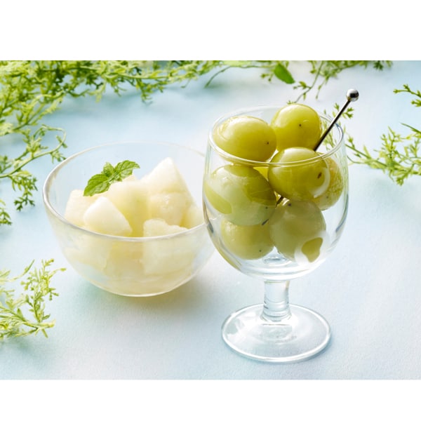 皮ごと食べられる大粒のシャインマスカットと、歯触りのいい甘くてジューシーなラ・フランス(洋ナシ)の2種を、一番おいしい旬のタイミングで、急速冷凍しました。半解凍でシャーベットでお召し上がりいただくほか、ジュースやお酒の氷の代わりとして、スムージーやデザートのトッピングなど、フルーツ本来の香りや甘さをお楽しみください。
