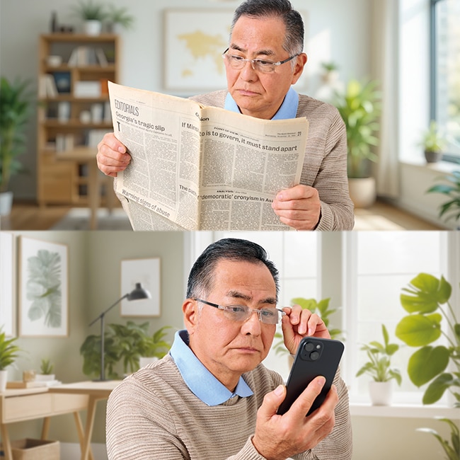 毎朝の新聞や読書の時間も、目の負担を軽減してストレスフリーに。