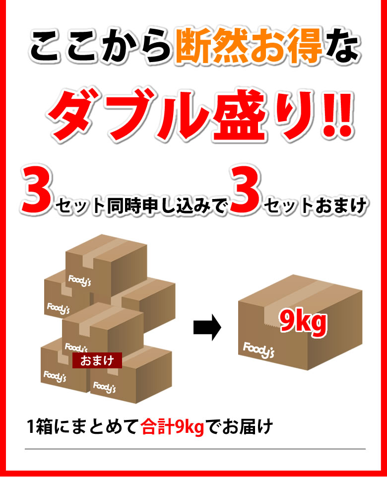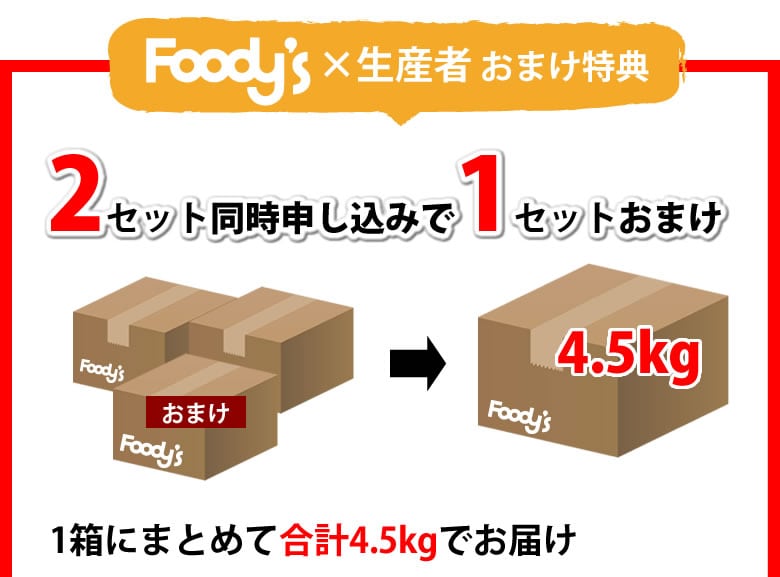 2セット同時申し込みで1セットおまけ(合計4.5kgを1箱でお届け)