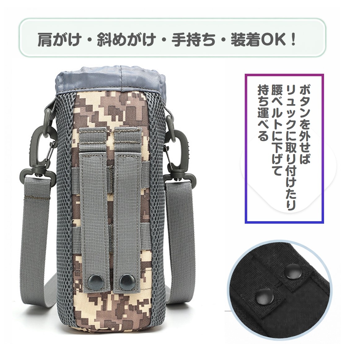 - 【迷彩グレー】水筒カバー ボトルホルダー 最大1.5L
