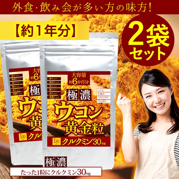 - 【約1年分】極濃ウコン黄金粒 (約6か月分/180粒)×2袋