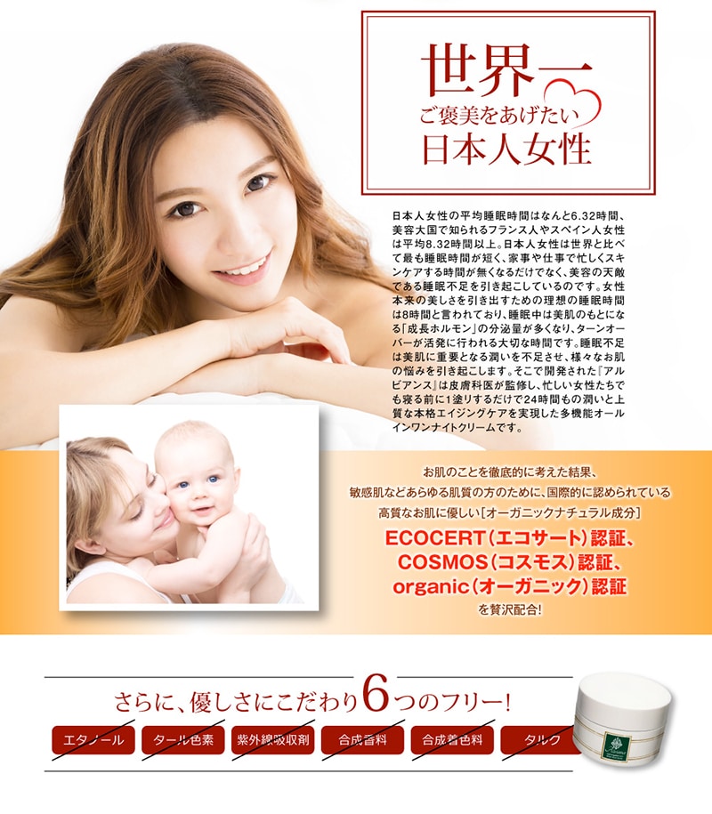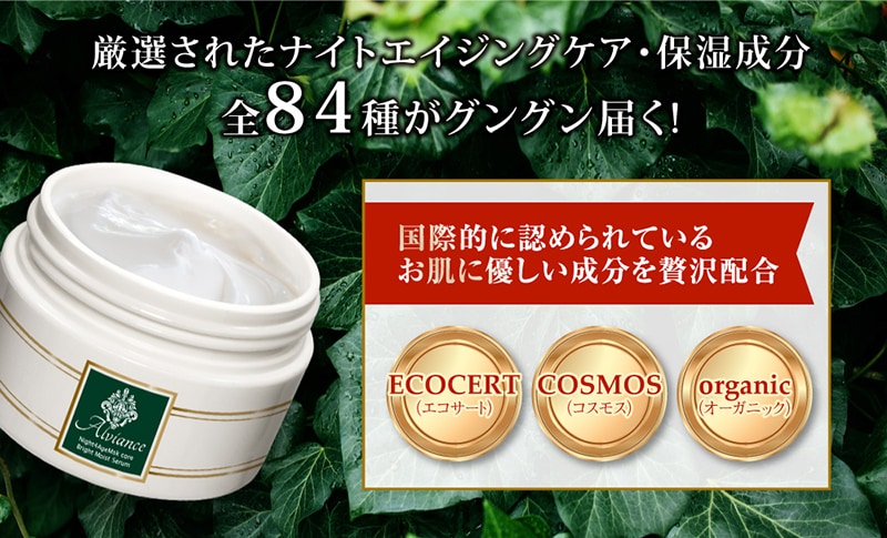 西洋のオーガニック統一基準「COSMOS」に基づき認証を受けた美容成分など厳選し、100種を凝縮したオールインワンナイトクリームです。