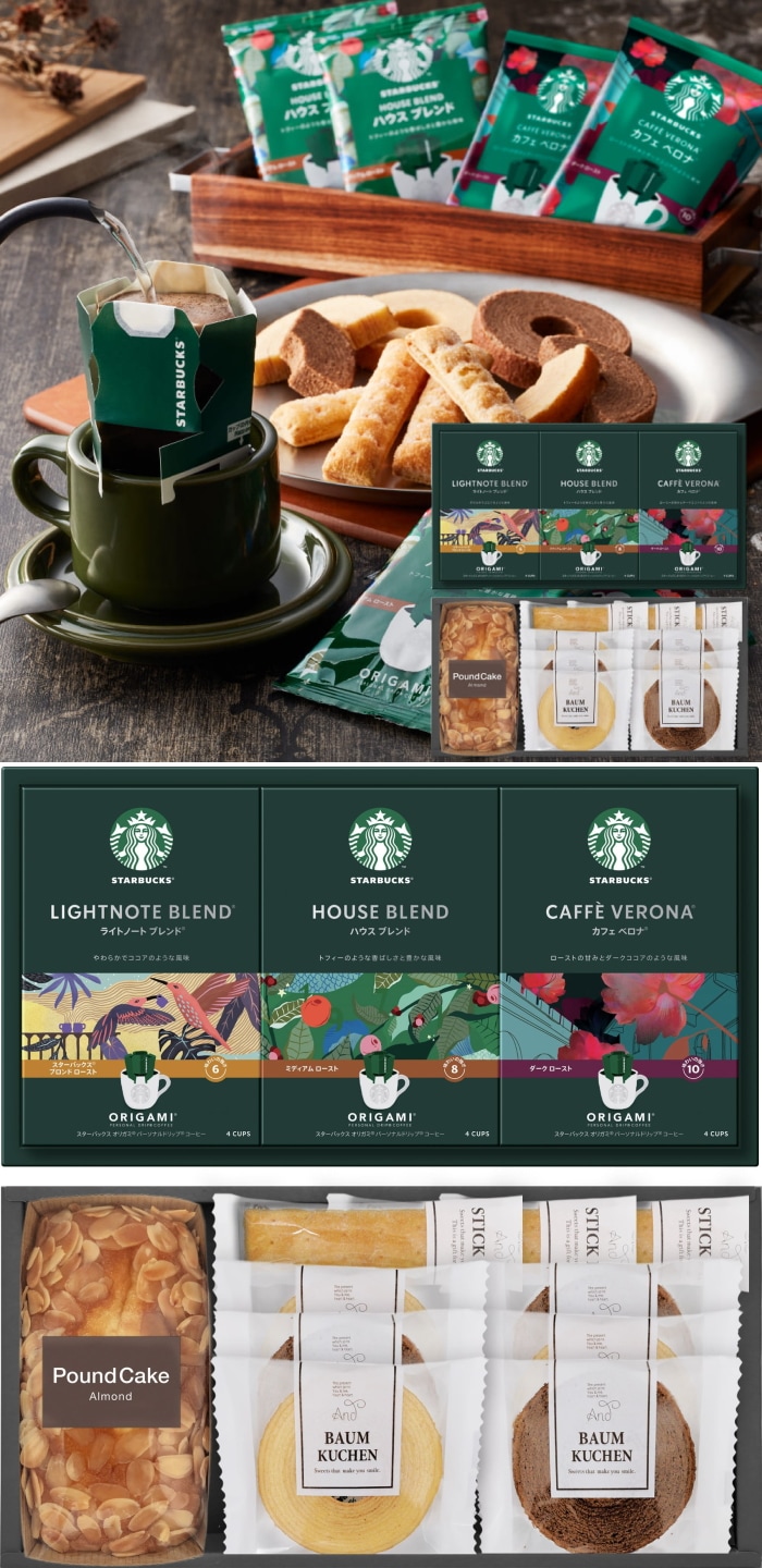 スターバックスコーヒーギフトと、お菓子のセットでワンランクアップのひとときを。
