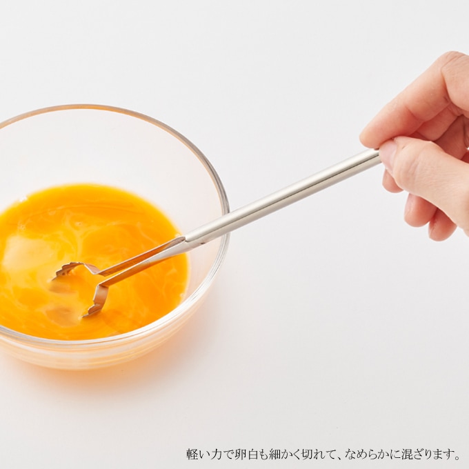 軽い力で卵白も細かく切れて、なめらかに混ざります。