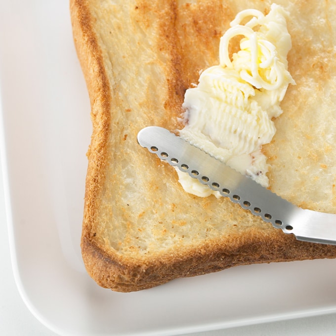 ヨシカワ EAトCO イイトコ ヌル/バターナイフ | 斜めの小さな穴が固いバターを糸状に削り、そのまま塗れます。