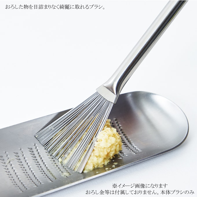 おろした物を目詰まりなく綺麗に取れるブラシ。