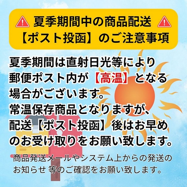 ※夏季シーズン「ポスト投函(常温商品)」へのご理解の上、お申し込み下さい。