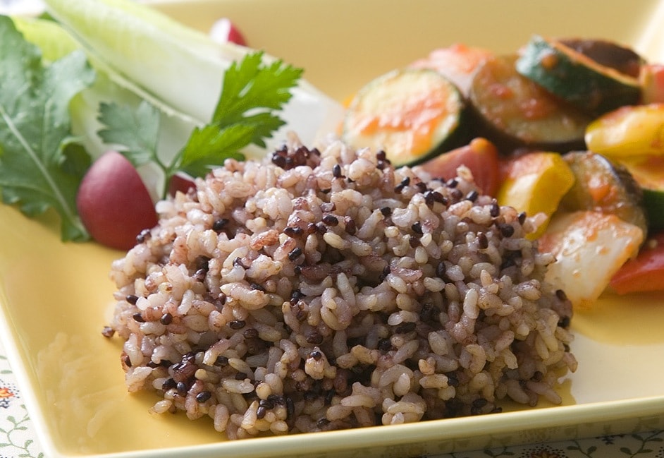 ・発芽玄米と黒米のごはん:発芽玄米(うるち米)、黒米