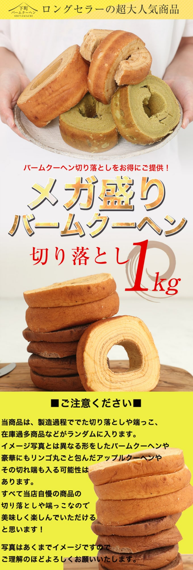 【1kg】 バームクーヘンメガ盛り1kg★工場長のおまかせ※ご家庭用 D | メガ盛り★工場長のおまかせ1kg!