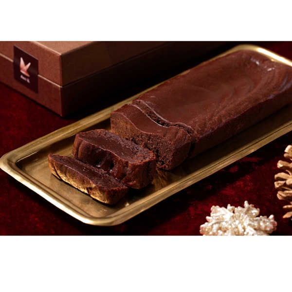 ダークチョコレートに、バター、卵、砂糖、小麦粉を合わせたシンプルなレシピ。低温で焼き上げることで、なめらかな口どけを引き出しました。インドネシア産カカオの濃厚な味わいをご堪能ください。