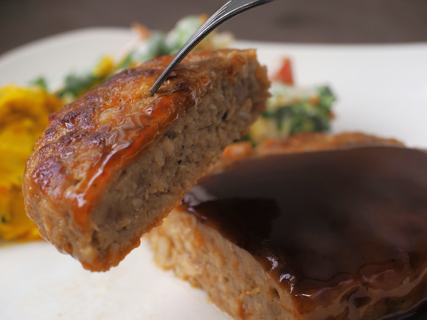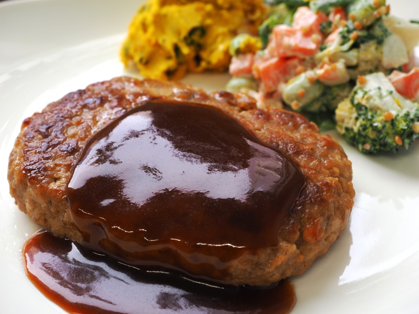 業務用ならではの飾り気なさながら、一般的なお惣菜ハンバーグでは味わえない本格的な美味しさです。