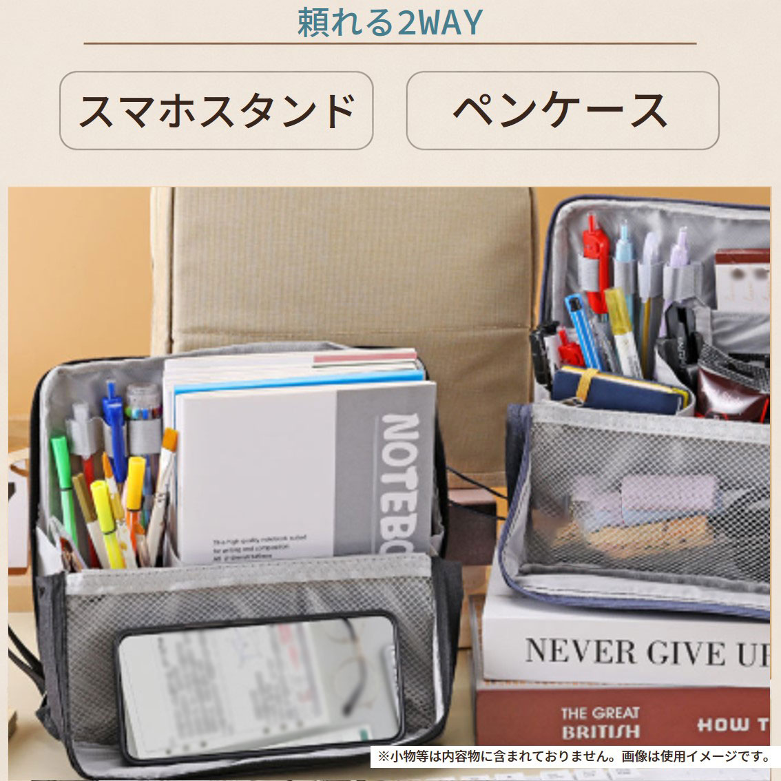 コスメの他に、文房具やガジェット等マルチに収納。