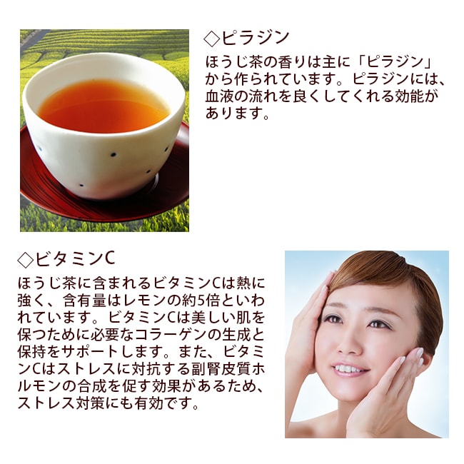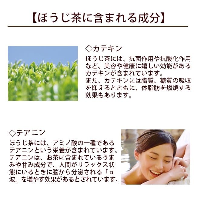 ほうじ茶にはリラックス効果があり、また美肌やダイエット効果にも効果があるといわれています。