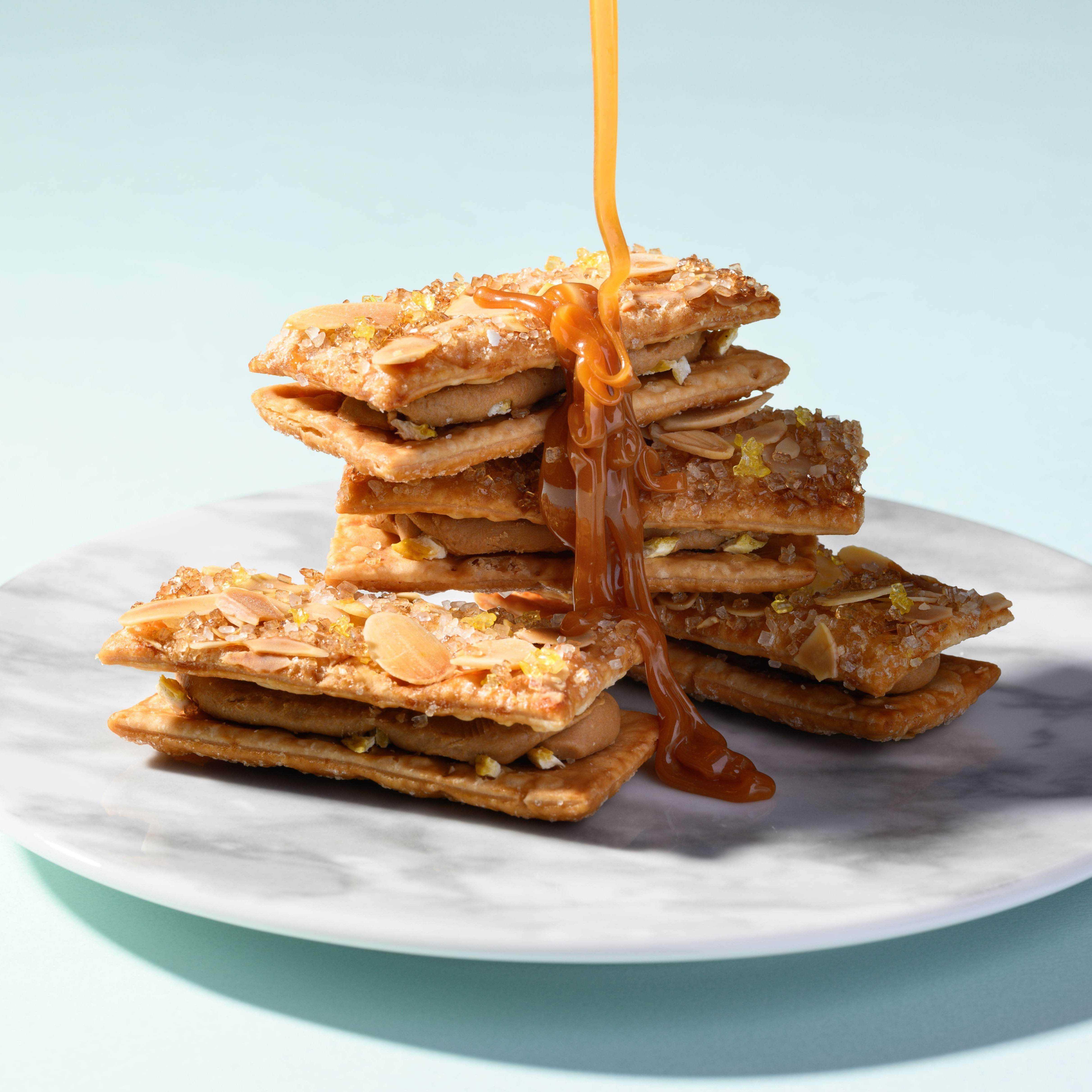 洋菓子喫茶アマンドで人気の「ナポレオンパイ」の味わいを全国にお届けしたいとの思いから焼菓子にした「ボン・ナポレオン」の新作フレーバー「塩キャラメルのミルフィーユ」