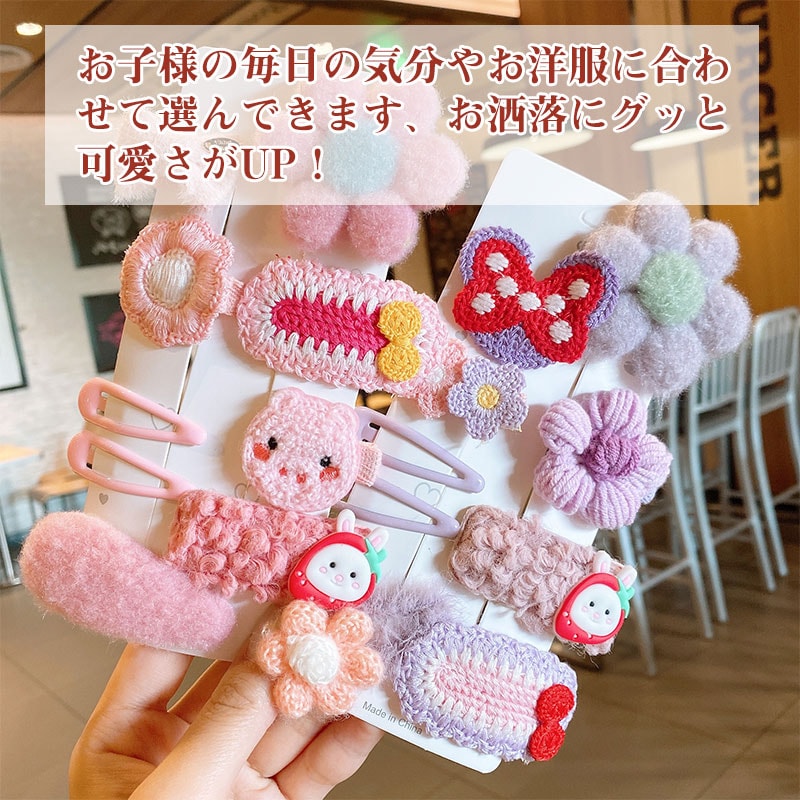 ベビーから大人顔負けのお洒落を楽しめるキッズまで、幅広くお使いいただけるヘアクリップセットです。