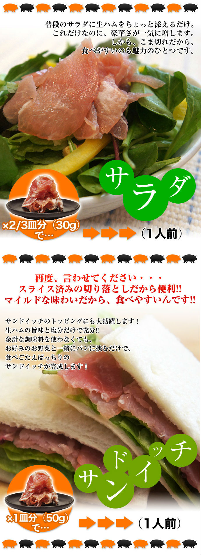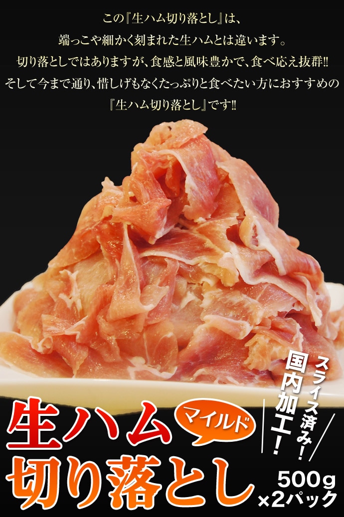 【計1kg(500g×2パック)】生ハム切り落とし マイルド | 高級ハム専門店や、レストランなどで使われる業務用だから品質は抜群!