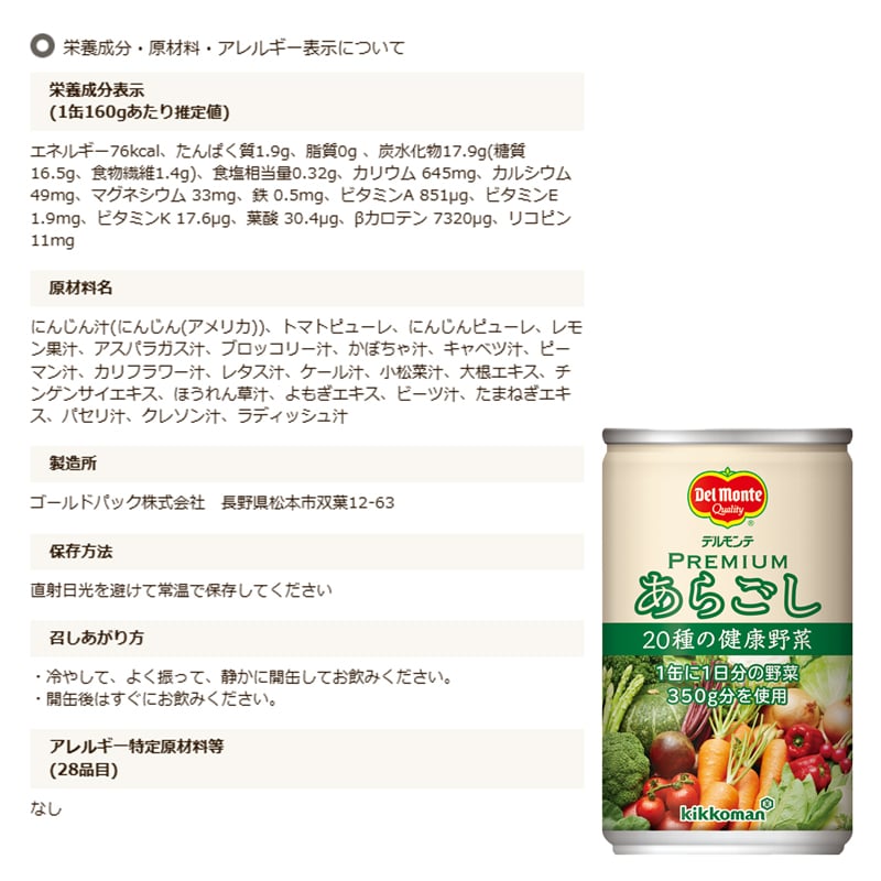 【賞味期限間近】デルモンテ プレミアムあらごし 20種の健康野菜 160g 【2箱60本】 本格 | 飲みやすい1缶160gに緑黄色野菜13種類を含む20種類の健康野菜をぎゅっ!