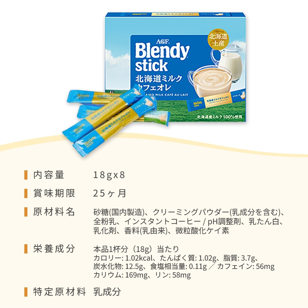 【18g×8本入】AGF ブレンディ 北海道ミルクカフェオレ | ご当地のおいしさと魅力をスティック1本に詰めました。