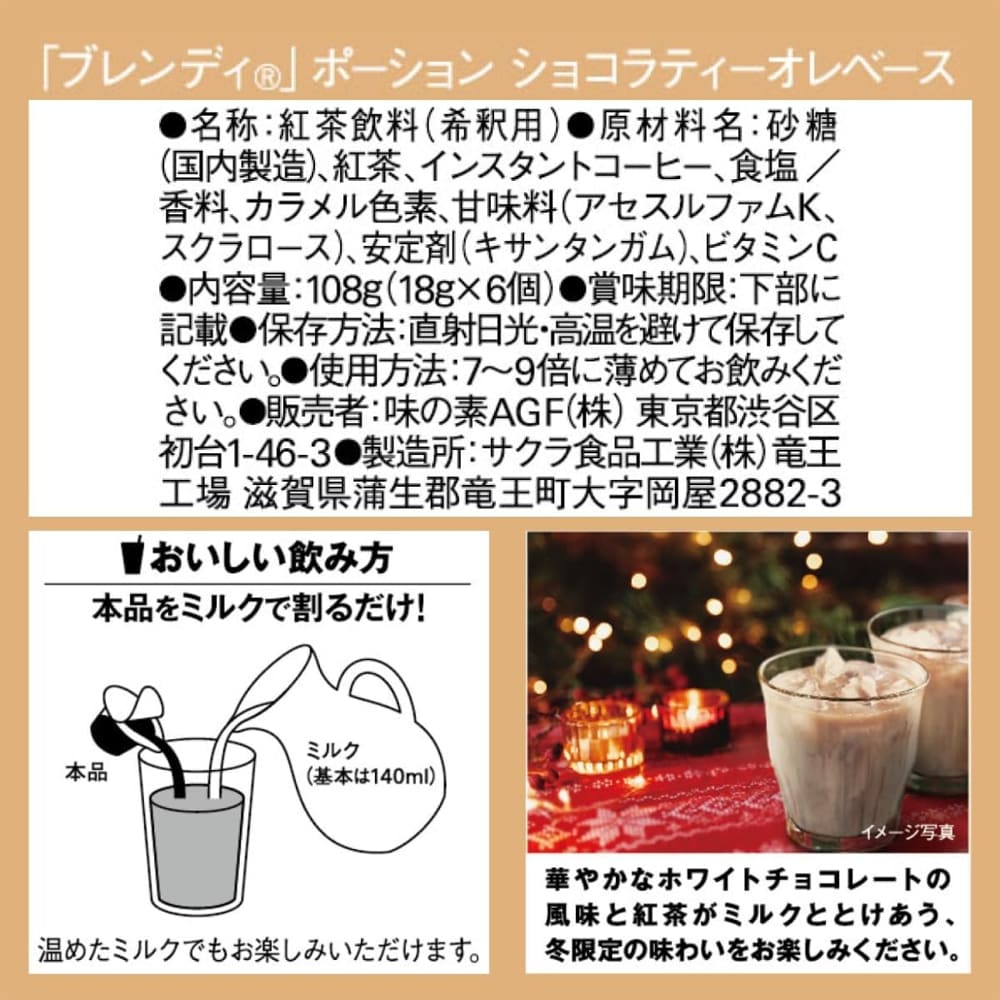 【計30個/18g×6個入×5袋】AGF ブレンディ ポーション ショコラティー | おうちでまったり、冬だけの特別なメニュー