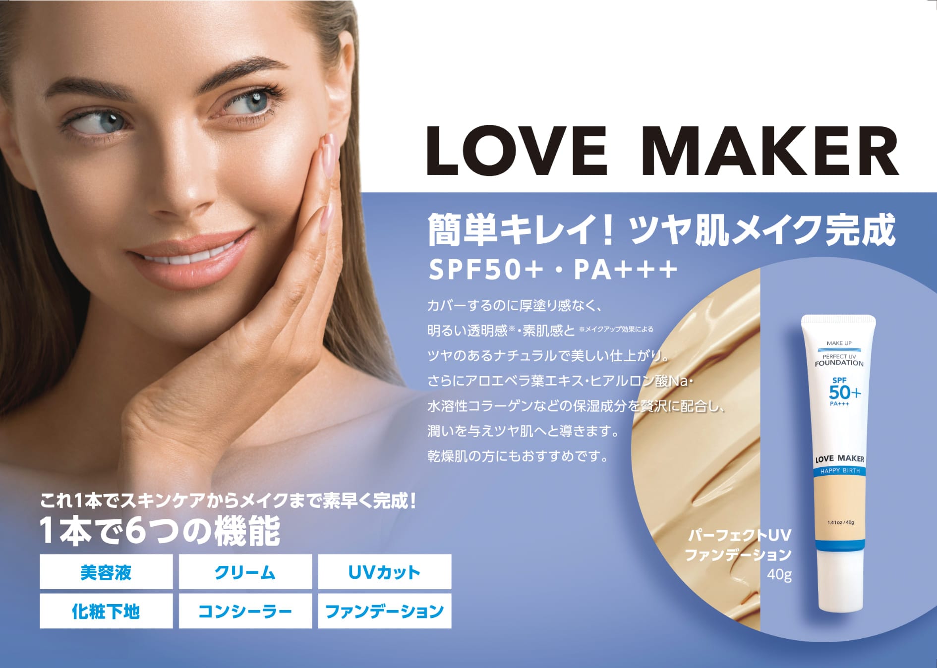 【日替わり数量限定】【LOVE MAKER】パーフェクトUVファンデーション 40g×3個 | 簡単キレイ!ツヤ肌メイク完成!UVカット効果 SPF50+ PA+++