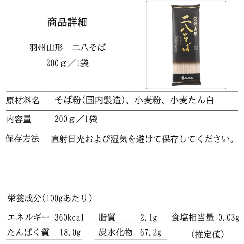 【20人前/200g×10袋】羽州山形 二八そば 製麺時食塩不使用 | そばの歯ごたえ、滑らかなのどごし、そば湯もおいしい八割そば。
