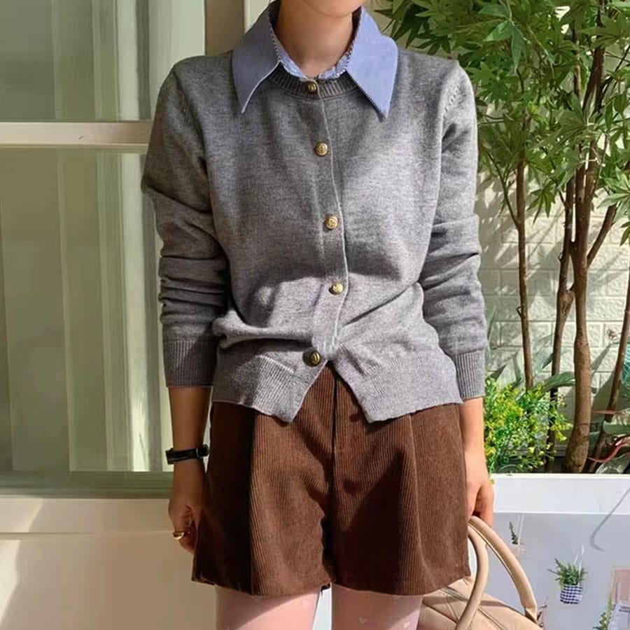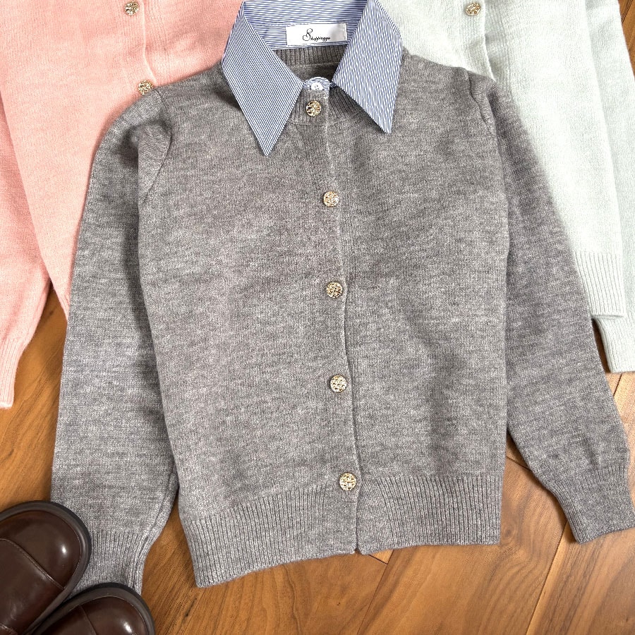 使い勝手の良いシンプルな襟付きカーディガン 。