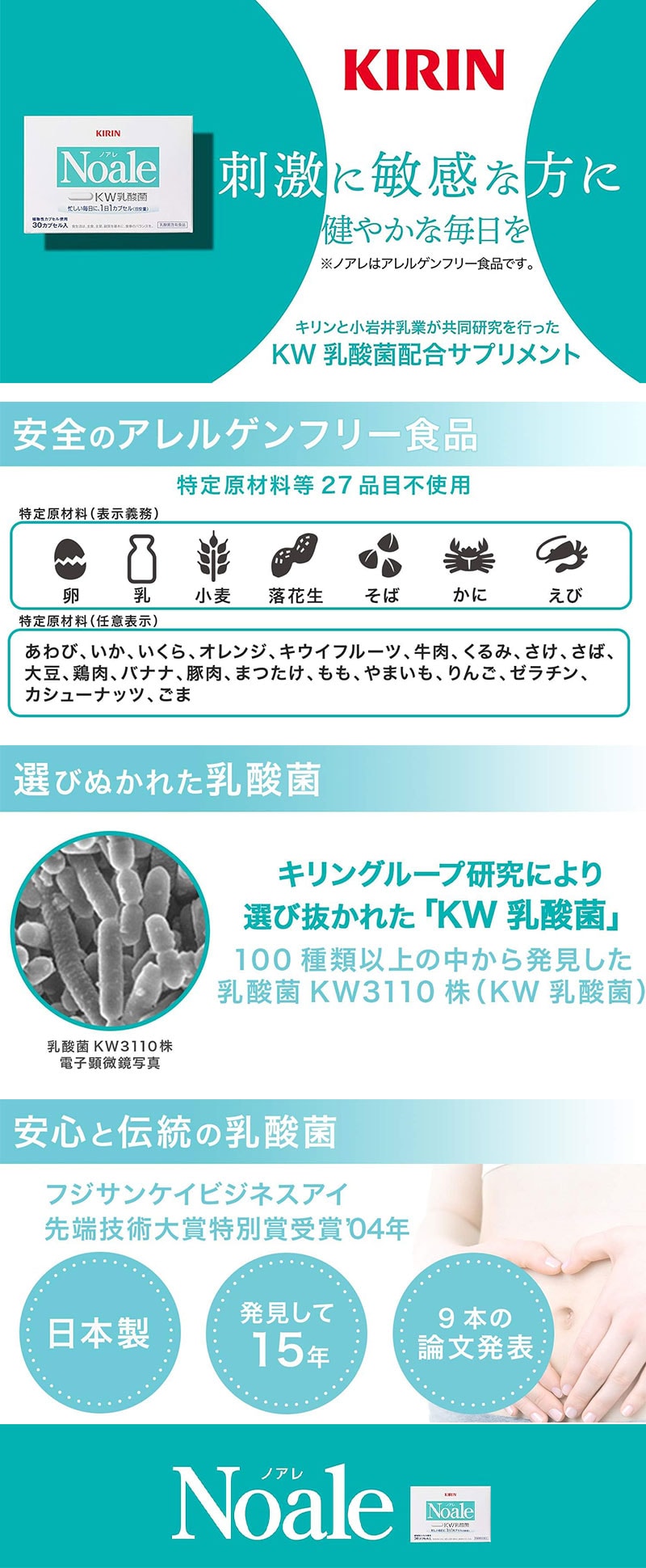 【賞味期限間近】【30カプセル×3箱】キリン Noale(ノアレ)乳酸菌サプリメント 健康サプリ | キリンと小岩井乳業が共同研究を行った「KW乳酸菌」