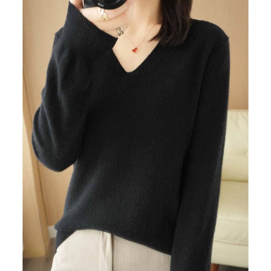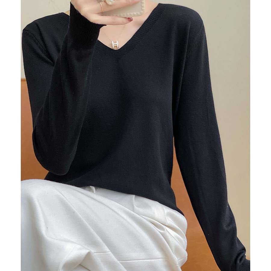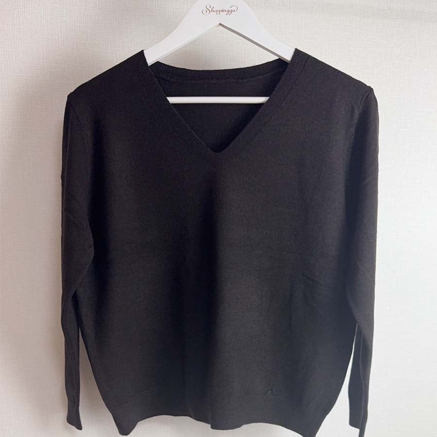 【ブラック】薄手Vネックニット | 春秋に1枚着としてはもちろん冬にはインナーとしても活躍してくれる優秀アイテム