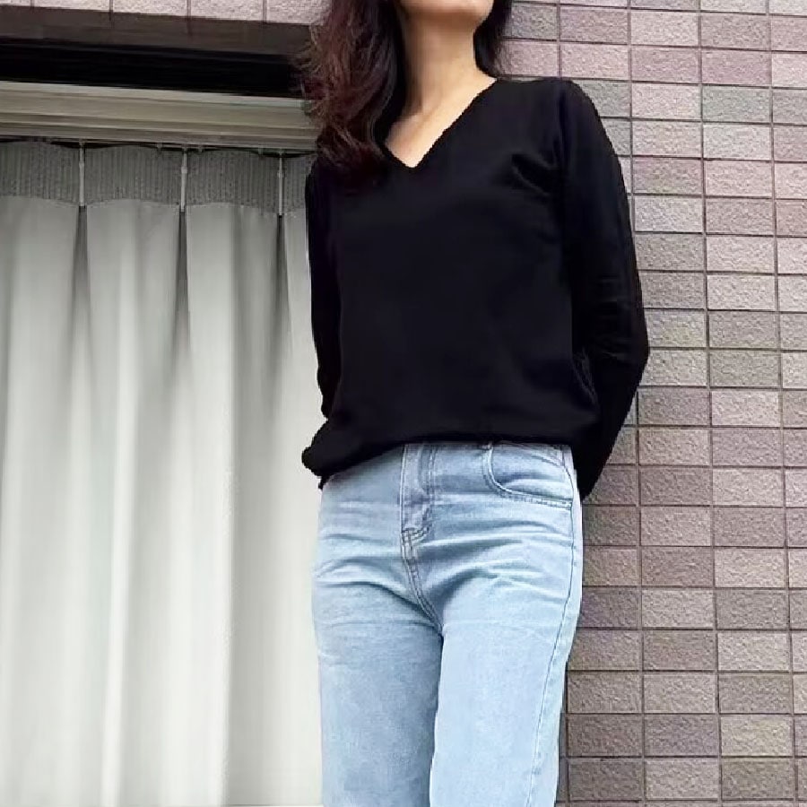 着ぶくれしない重ね着にお勧め薄手のvネックカットソーが登場。