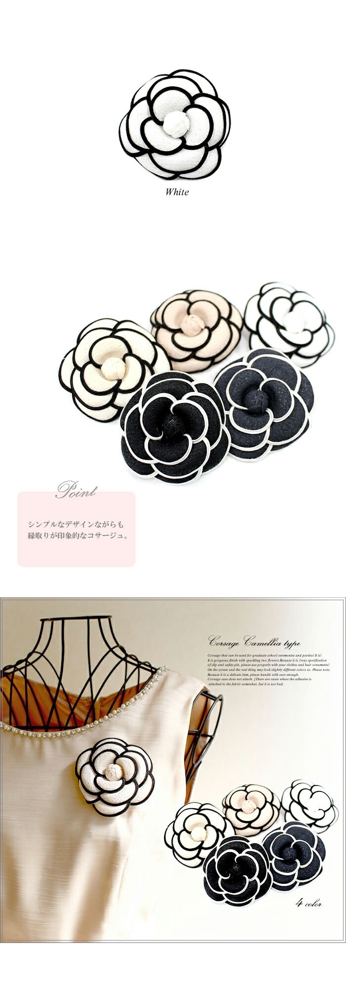 【ホワイト】クリップブローチ カメリア フォーマルコサージュ | 卒入学式やパーティーなどに使えるコサージュ! クリップと安全ピンの2way仕様