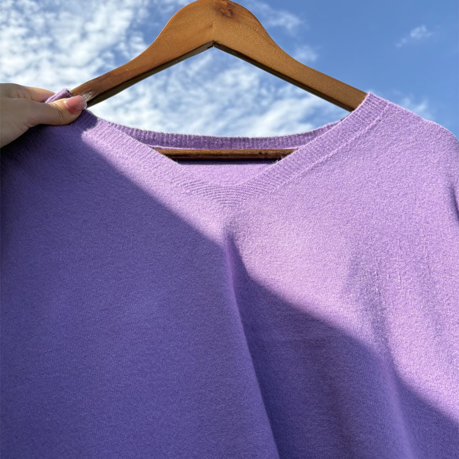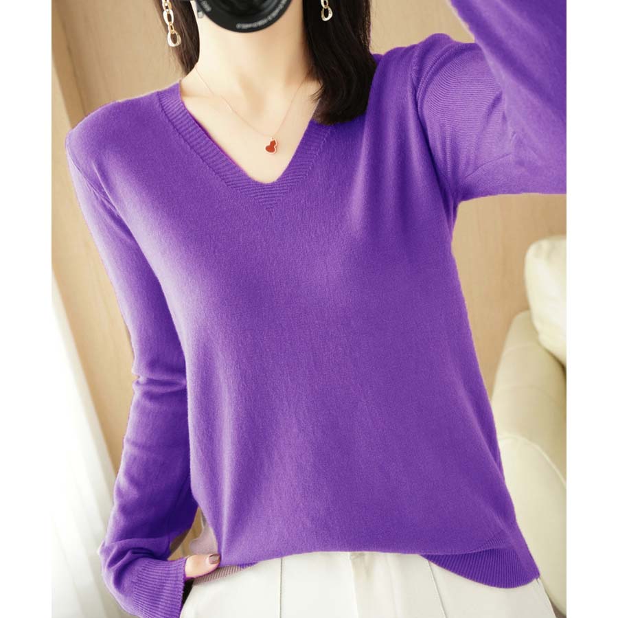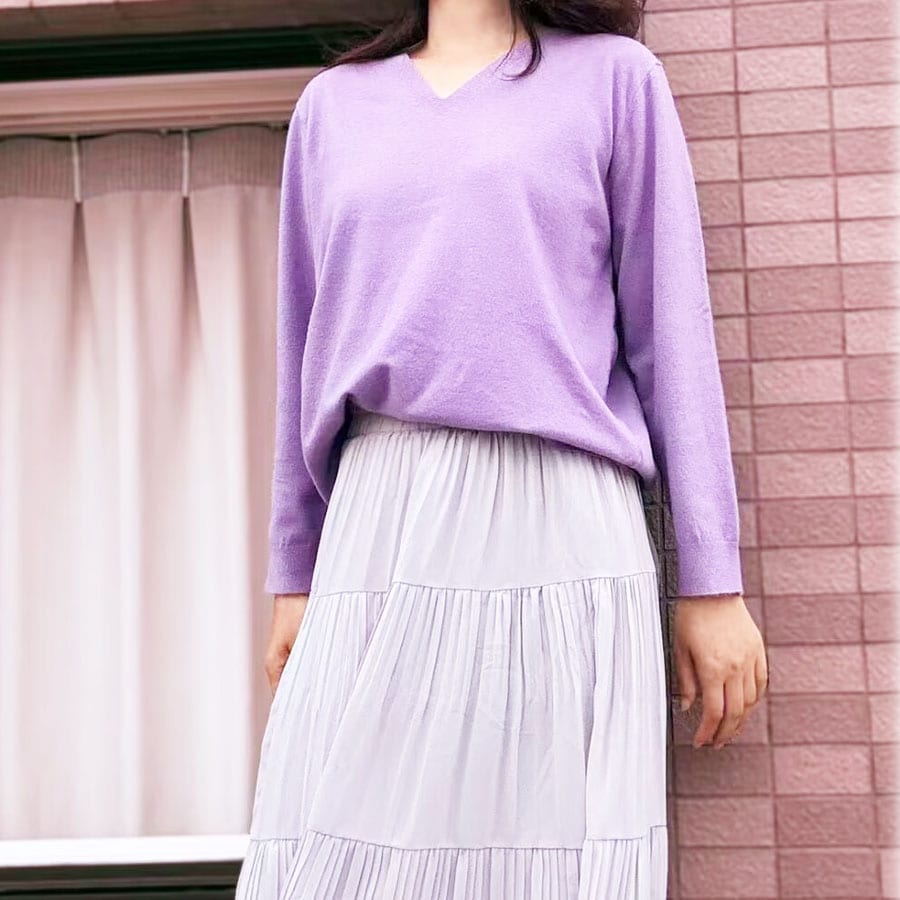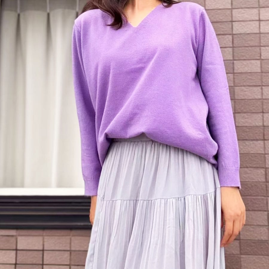 【パープル】薄手Vネックニット | 春秋に1枚着としてはもちろん冬にはインナーとしても活躍してくれる優秀アイテム